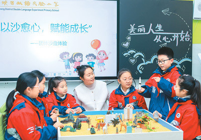 近日,多地中小学开学,迎来春季新学期。图为山东省枣庄市薛城区双语实验小学老师为学生进行心理健康辅导。 王龙飞摄(新华社发)